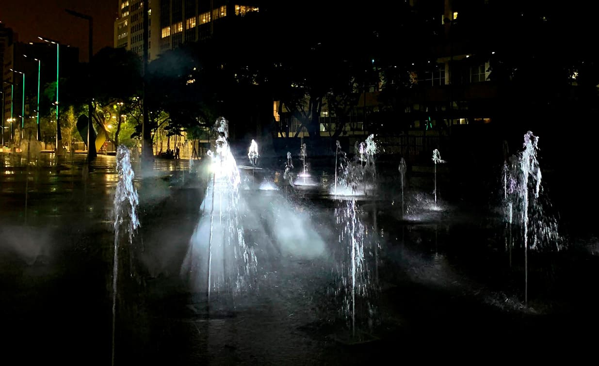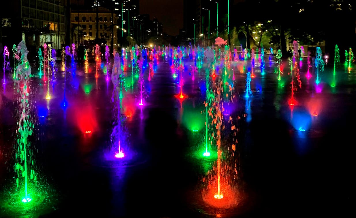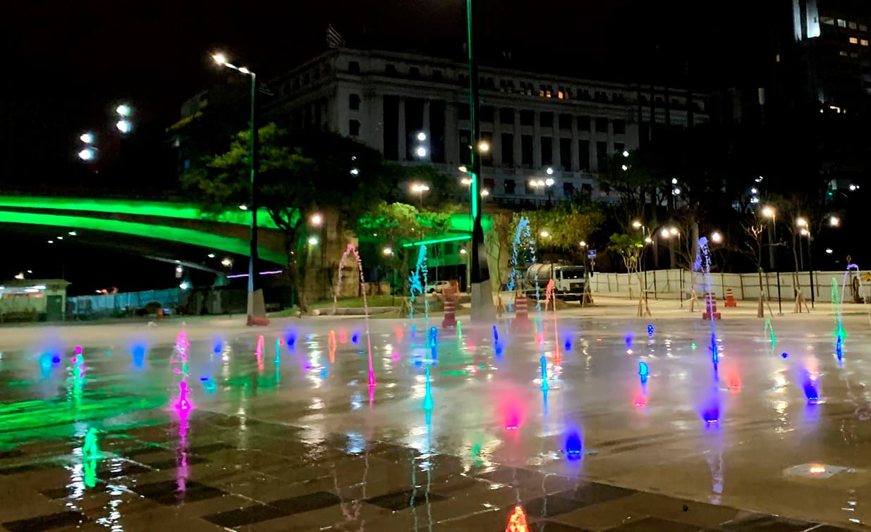 A Fonte do Anhangabaú é a maior Fonte Interativa da América Latina, conta com 852 jatos com controle de funcionamento individualizado, o que proporciona grande quantidades de coreografias.