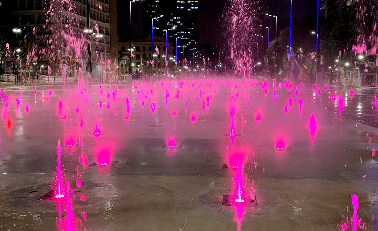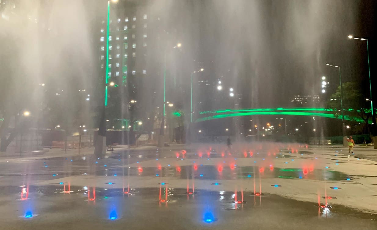 O projeto é considerado singular, por se tratar de tantos equipamentos a serem comandados via software DMX, responsável por controlar o funcionamento dos jatos, e também a troca de luz possibilitando mais de 500 cores em tonalidades distintas.